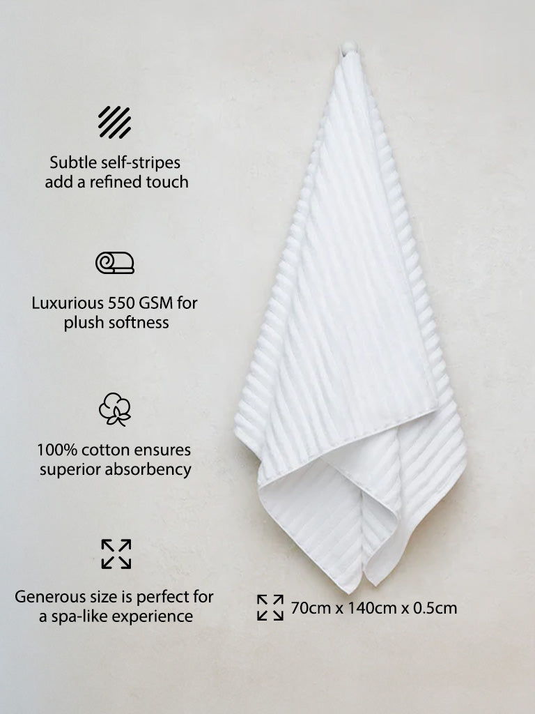 Westside Home White Self-Striped Luxe Bath Towel