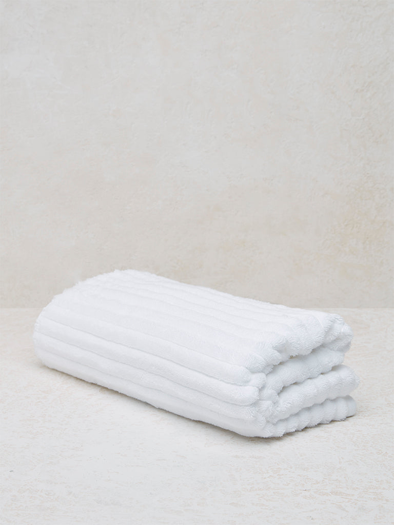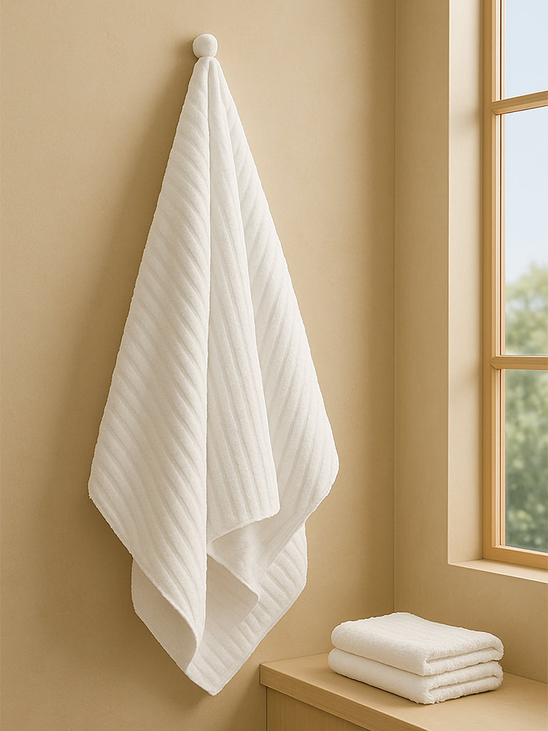 Westside Home White Self-Striped Luxe Bath Towel
