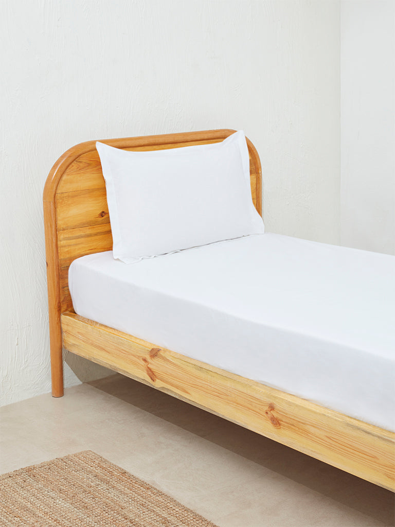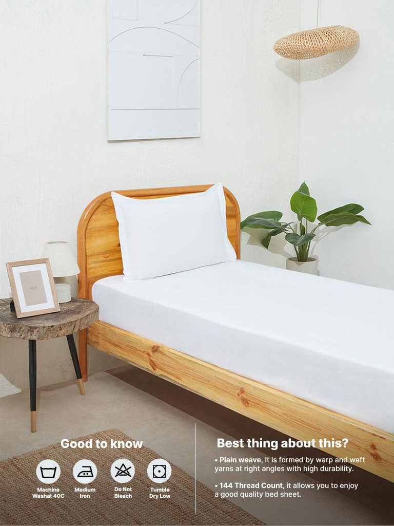 Embrace the purity of this white fitted sheet from Westside Home. elevating your bedroom retreat to new heights of sophistication. Meticulously crafted from a luxurious 144TC pure-cotton material. this fully-elasticated sheet ensures a snug fit for your single-sized bed.