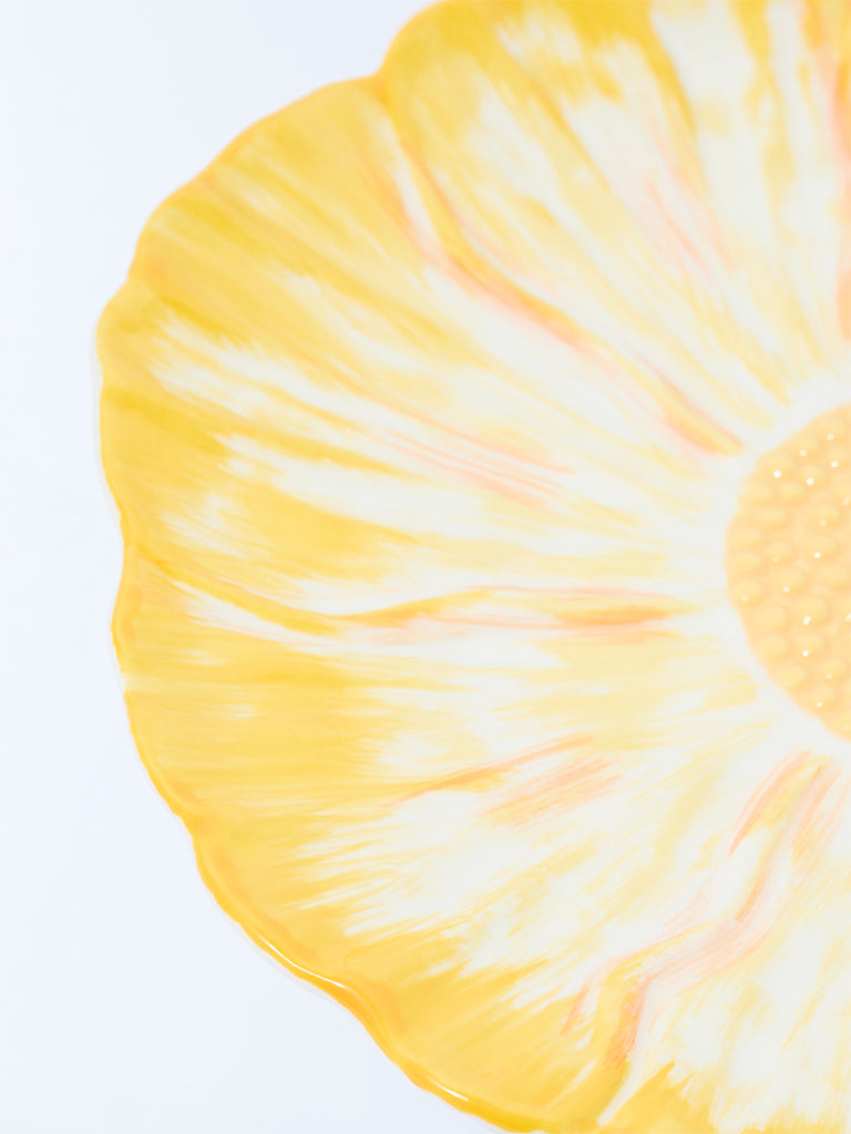 Delicate yet uplifting. this yellow side plate from Westside Home brings a floral flourish to everyday dining. The petal-like detailing along the rim adds texture and charm. while the soft glaze lends a handcrafted appeal. Perfect for serving starters. desserts. or mid-meal accompaniments. it’s a small piece that brightens the table and invites a slower. more thoughtful pace to every bite.