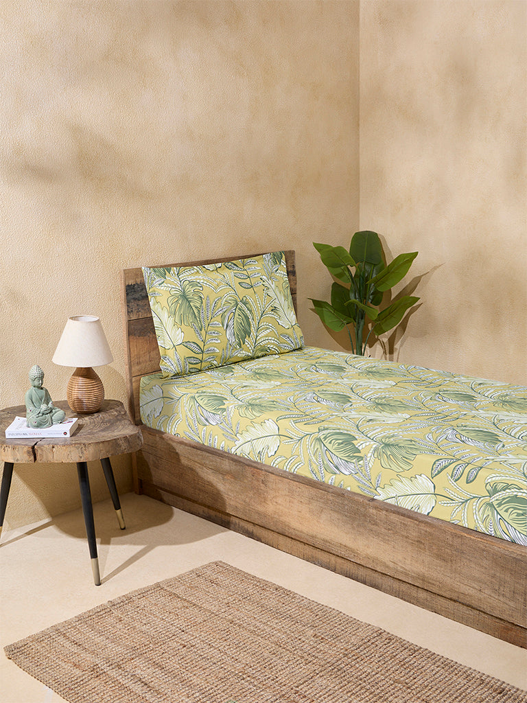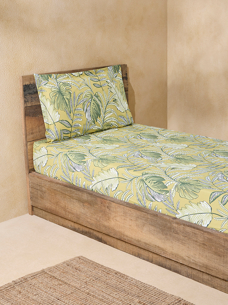 Westside Home Yellow Printed Single Bed Fitted Sheet and Pillowcase Set