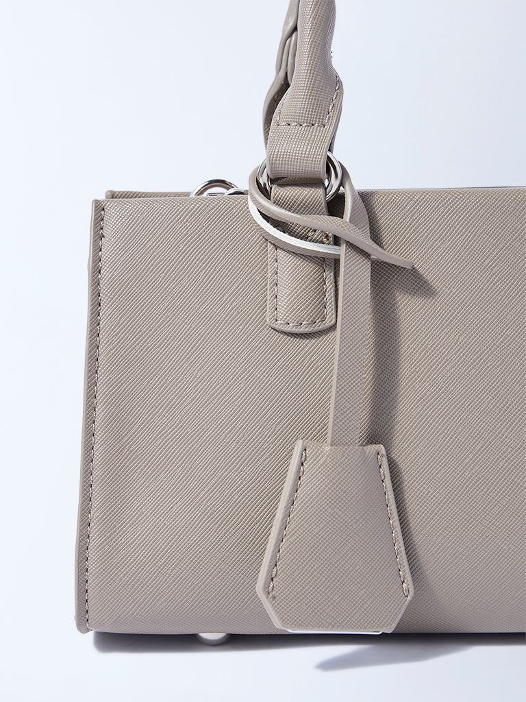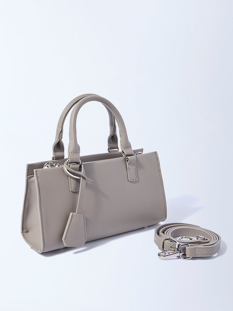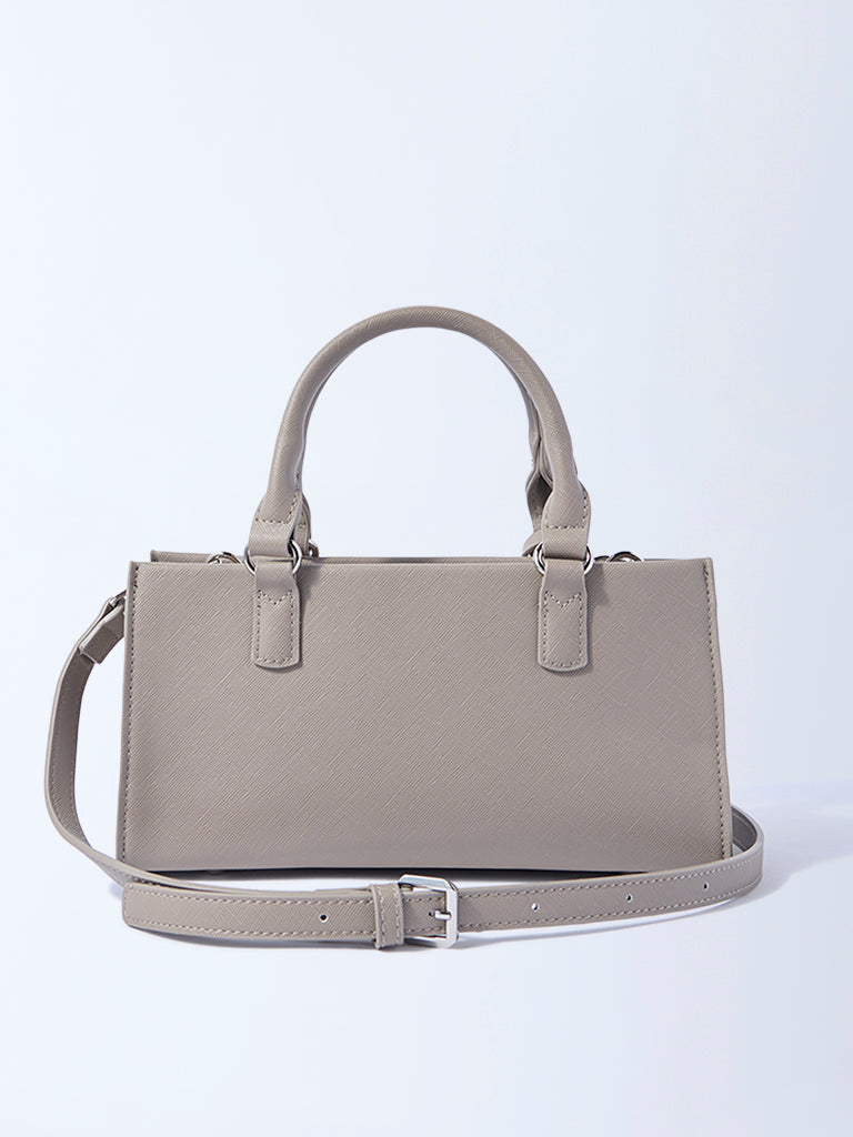 Designed to keep up with your busy days. this light grey sling bag from Westside is equal parts chic and functional. Its structured silhouette holds the shape beautifully. while the zipper top opens to a roomy interior with an internal pocket. Designed with twin handles and an adjustable strap. it can be styled in multiple ways to suit your day. Finished with a chic bag charm. it adds just the right amount of polish to any outfit.