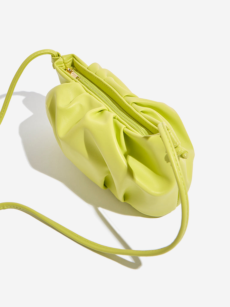Westside presents this lime sling bag. crafted from faux leather with a stylish pleated design that adds texture. The single main compartment is secured with a gold-toned zip. offering a spacious interior for your essentials. Complete with an attached sling. this bag ensures comfortable carrying while elevating your look.
