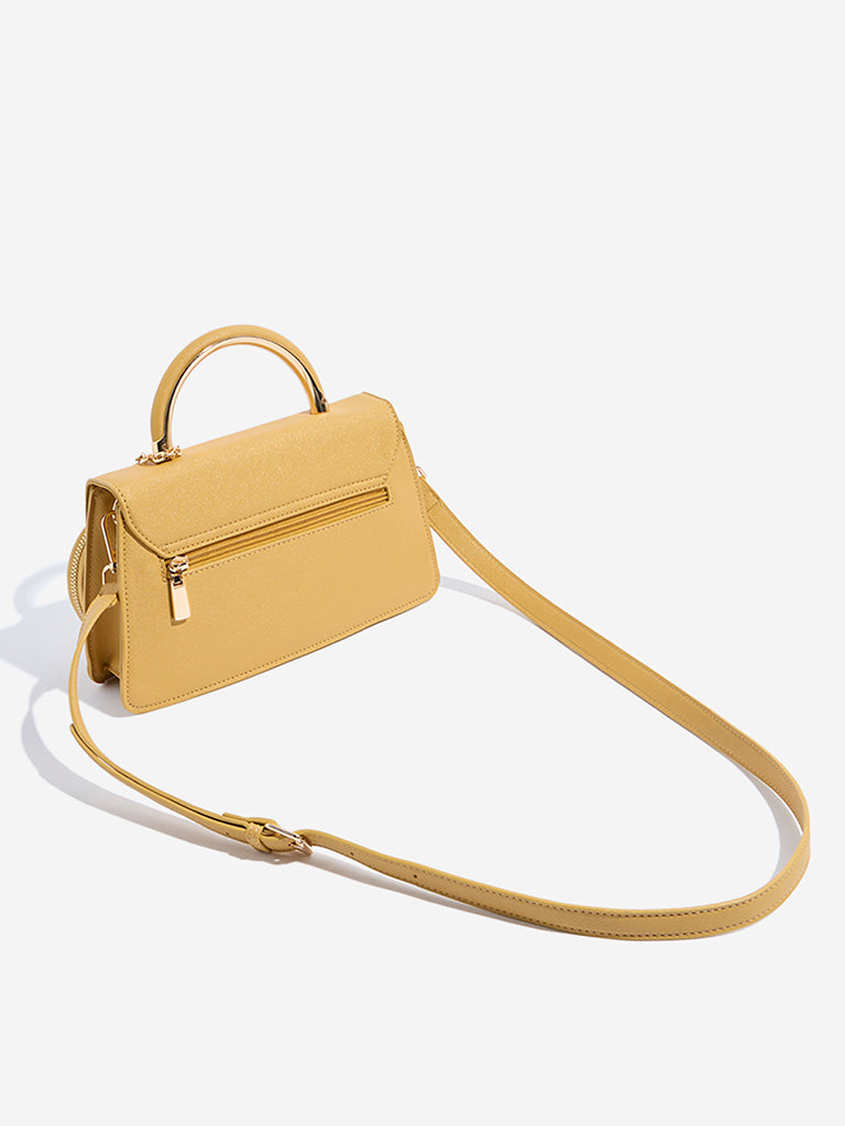 Make a statement with this mustard sling bag from Westside. designed for the modern wardrobe with a structured silhouette that lends it subtle sophistication. It includes a detachable. adjustable sling strap and boasts spacious compartments. providing ample storage for your essentials. A circular coin purse. cleverly clipped to the strap. adds a playful yet practical accent. Whether slung crossbody or carried in hand. this bag delivers a bold pop of colour to both tailored looks and off-duty ensembles.