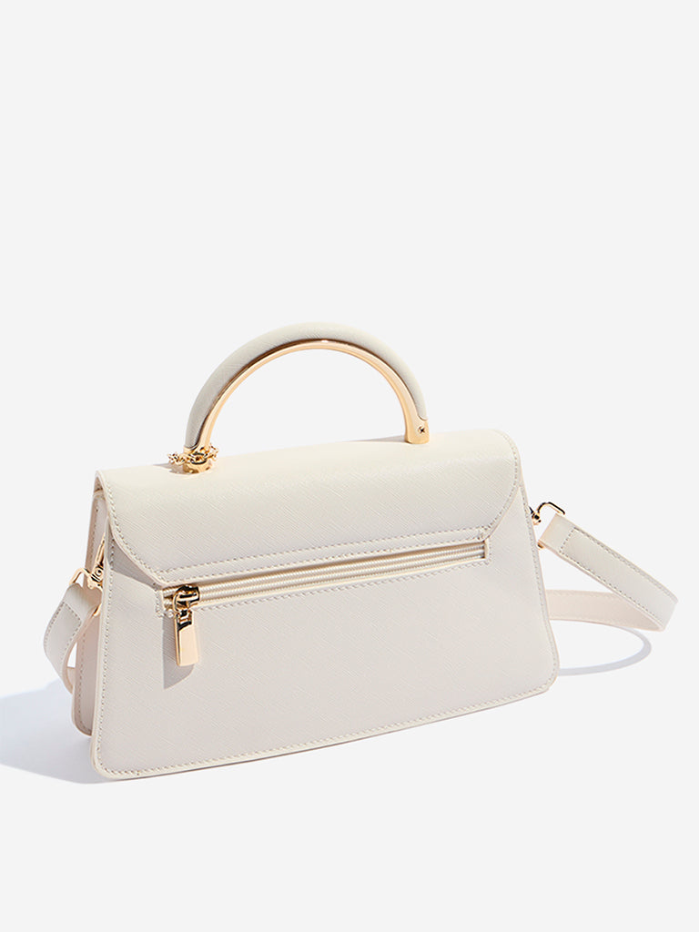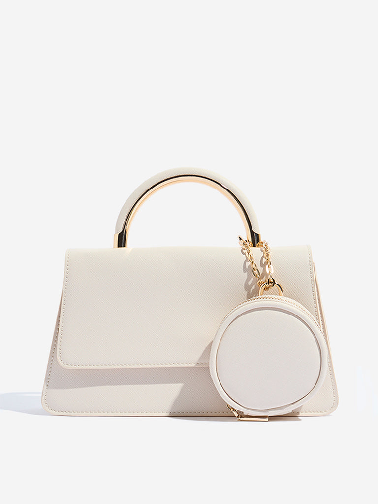 Westside brings this off-white sling bag exhibiting a structured silhouette. striking a perfect balance between sleek and sophisticated. A detachable. adjustable strap lets you switch from crossbody to handheld with ease. Inside. spacious compartments keep your essentials organized. and a charming circular coin purse clipped to the strap offers a playful detail. This bag is a versatile statement piece that brightens up everything from tailored office looks to laid-back weekend styles.