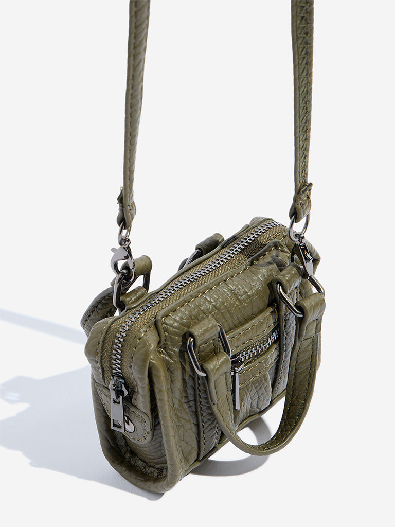 Carry an effortless edge with this olive textured mini sling bag from Westside. Compact in design yet big on function. it comes fitted with zipped compartments and silver-toned hardware. The detachable sling strap lets you switch from shoulder to handheld styling with ease.