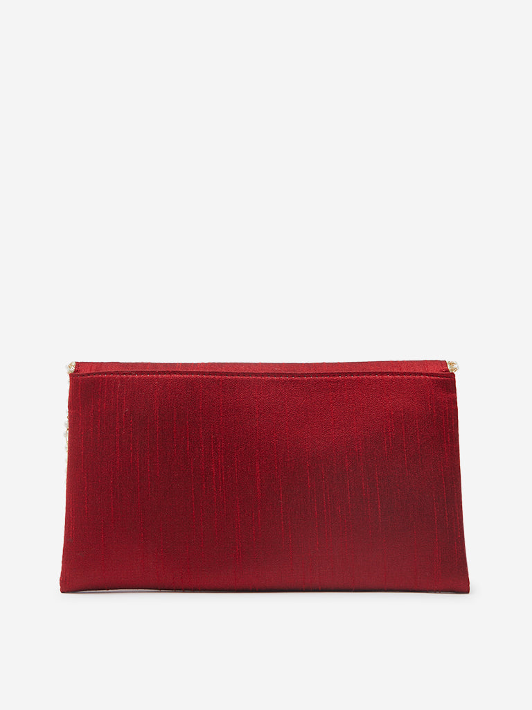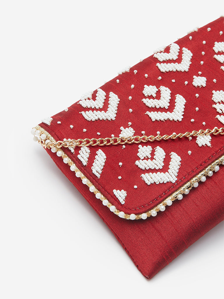 Bring stylish elements to your ethnic ensembles with this red clutch bag from Westside. Encrusted with delicate beadwork for added charm. this compact accessory has plenty of space to store your essentials.
