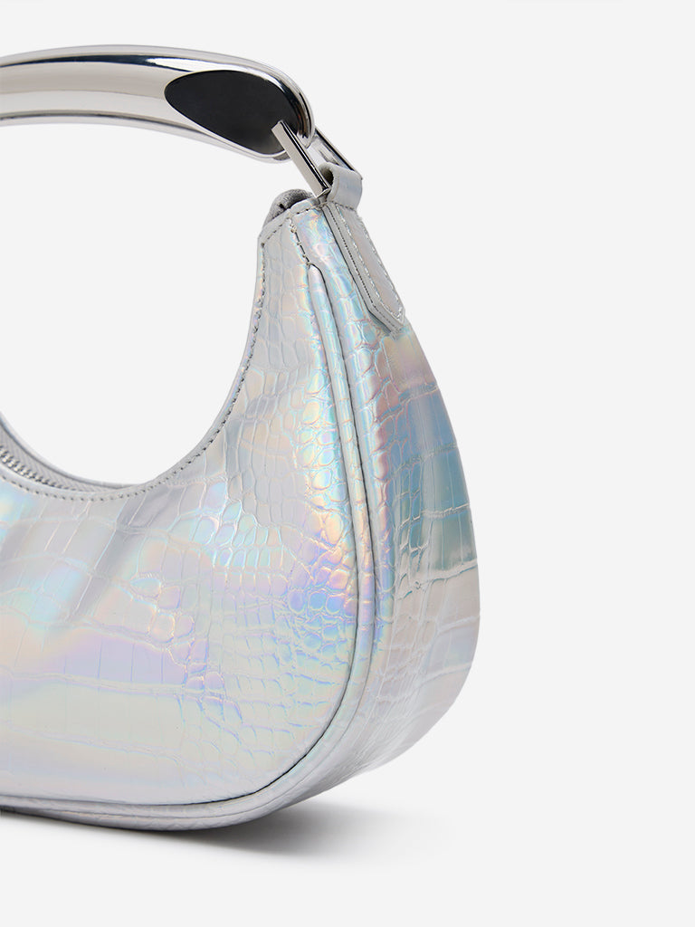 Westside Silver Textured Faux-Leather Hand Bag