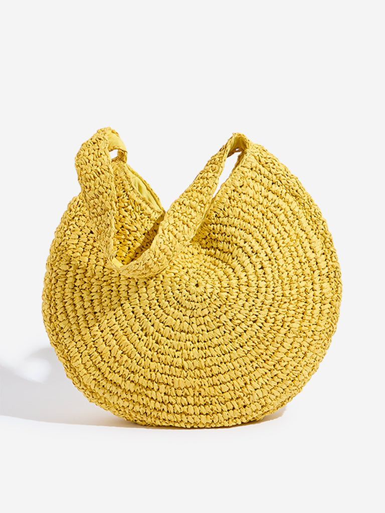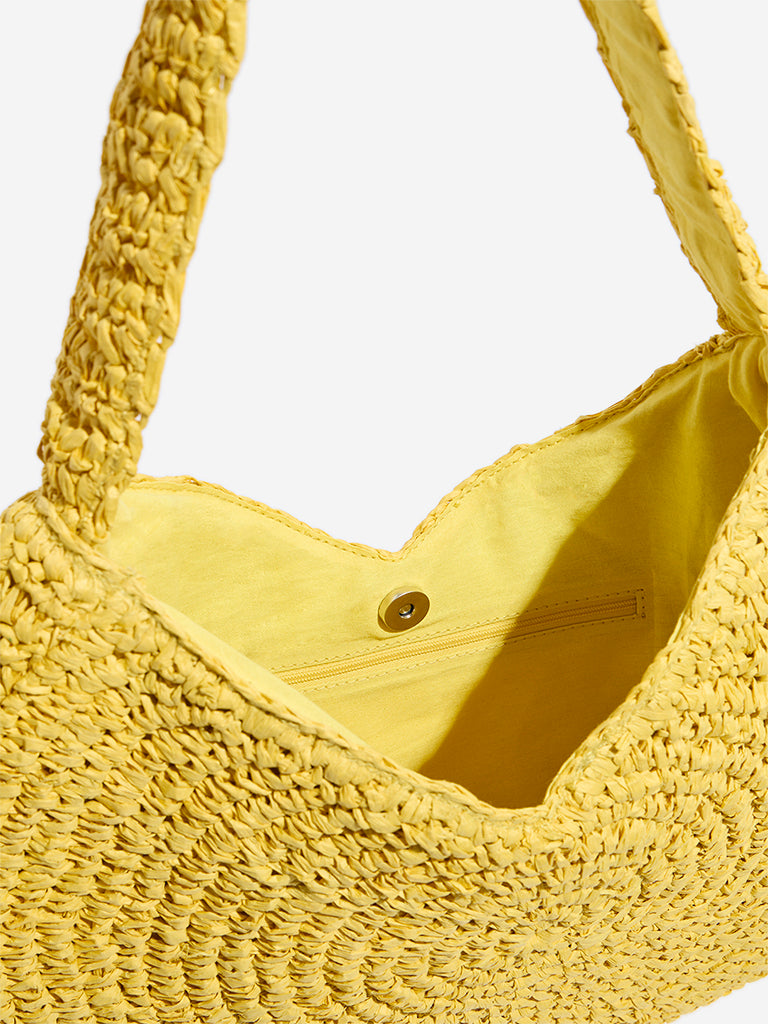 Westside presents this yellow knitted shoulder bag. adding a pop of color with its textured design. Featuring a soft yet structured silhouette. it offers a spacious interior for essentials and a comfortable shoulder strap for effortless carrying.
