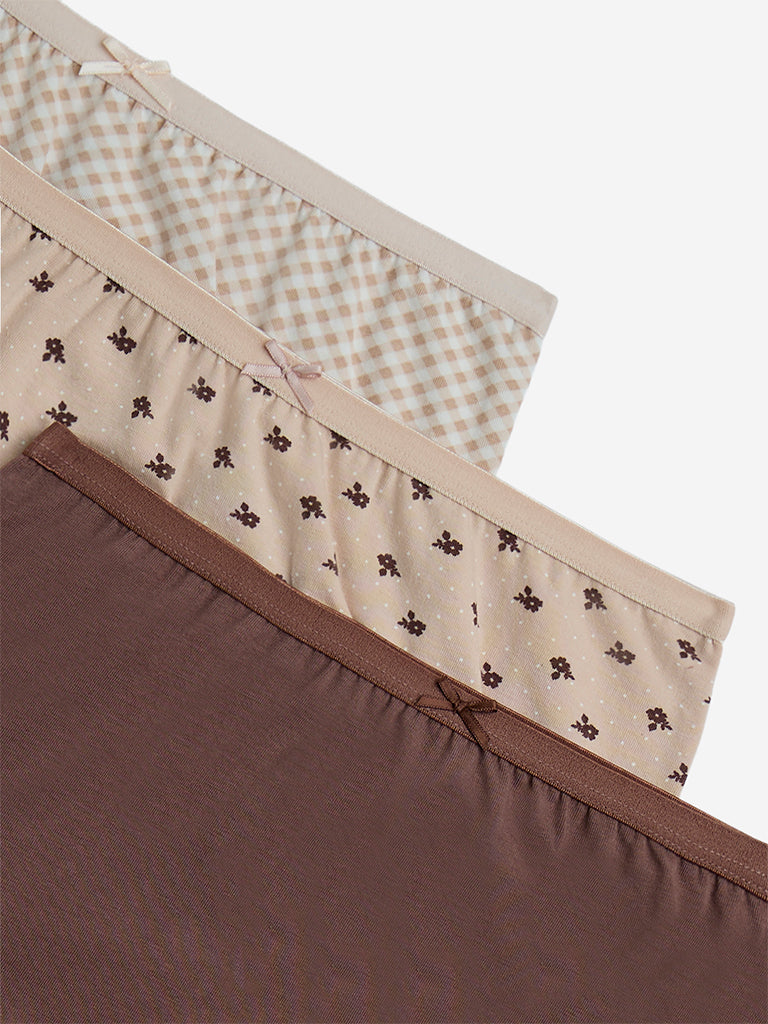 Wunderlove launches a versatile set of briefs. thoughtfully crafted from a cotton-blend fabric for optimum comfort and coverage. This essential trio includes two beige variants ??one adorned with a floral print and another with a classic checkered pattern ??alongside a solid brown option. Each brief is designed with an easy elasticated waistband and a comfortable fit. ensuring unrestricted movement throughout your day.