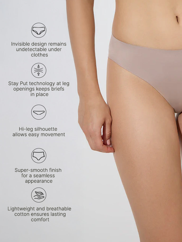 Wunderlove Beige Invisible Hi-Leg Cotton Briefs