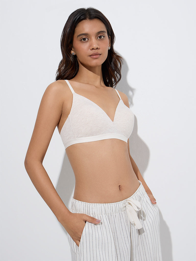 Experience everyday comfort with this beige padded bra from Wunderlove. Made from a rich cotton-blend fabric. it features a flattering V-neck. adjustable shoulder straps. and a secure back closure for a supportive fit. Perfect for a smooth and natural silhouette under any outfit.