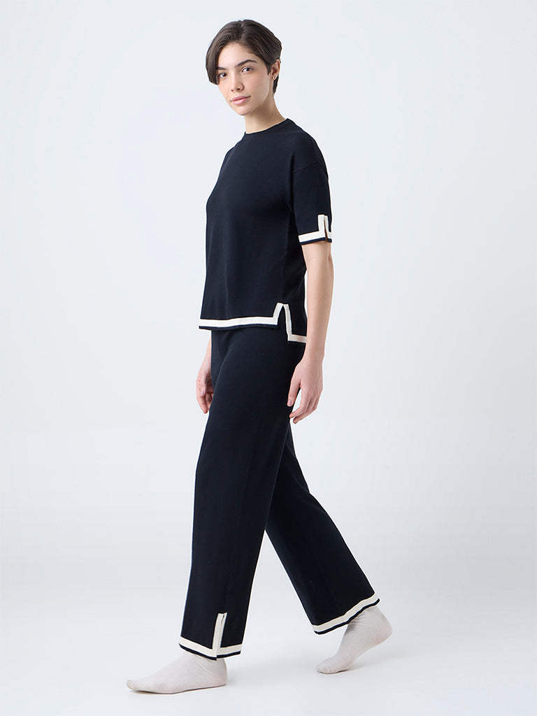 Wunderlove Black Contrast-Detail High-Rise Pants