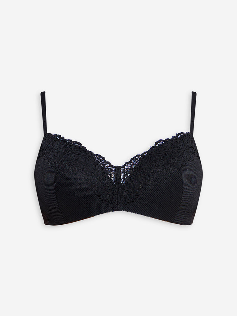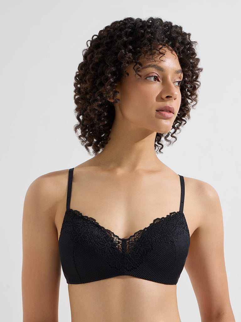 Wunderlove Black Floral Lace Detailed Padded Bra