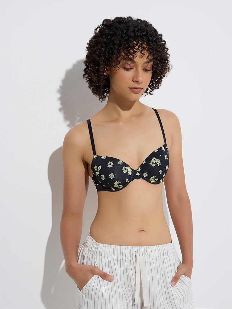 Wunderlove Black Floral Printed Underwired Bra – Pack of 2