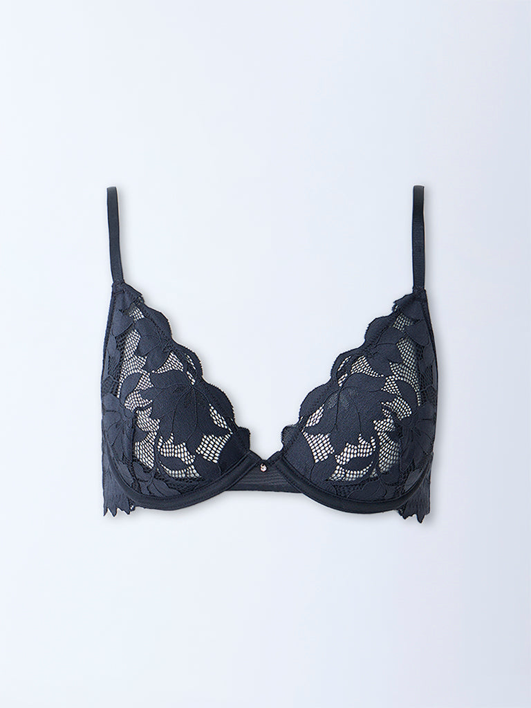 Wunderlove Black Lace-Detailed Underwired Bra