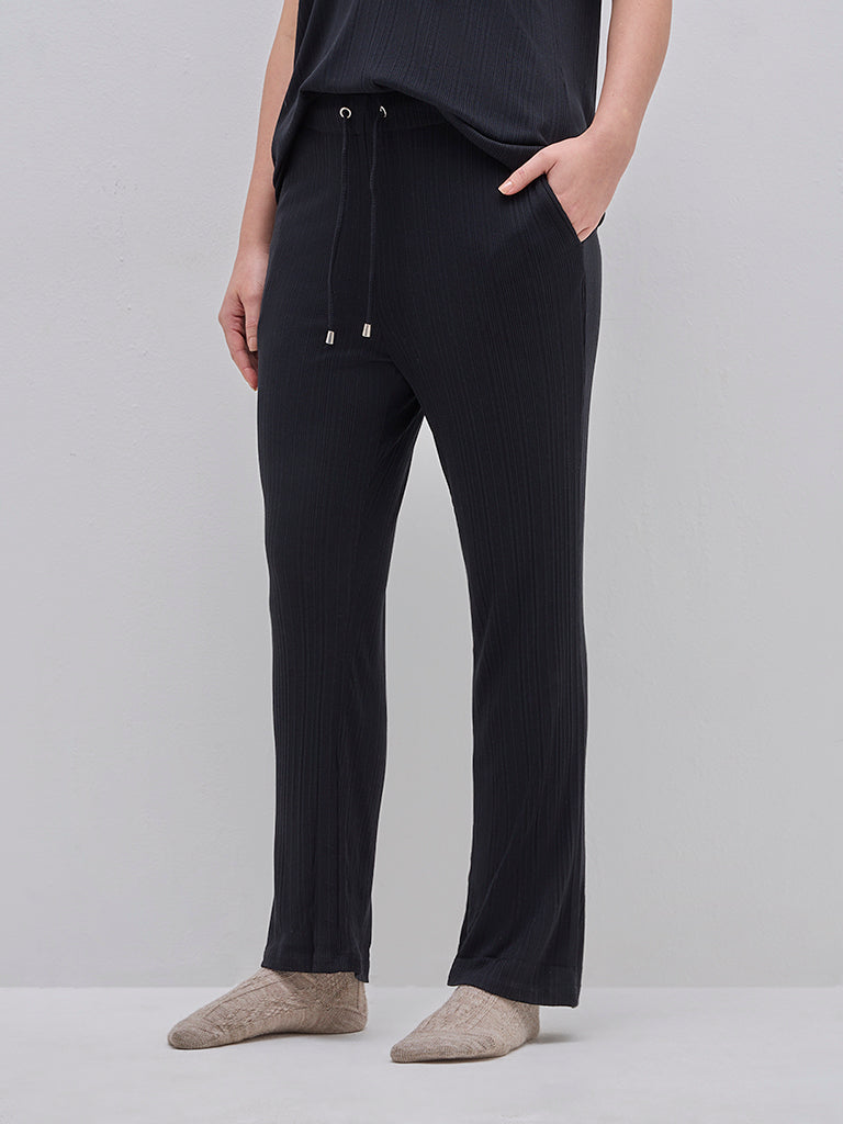 Wunderlove Black Ribbed High-Rise Lounge Pants