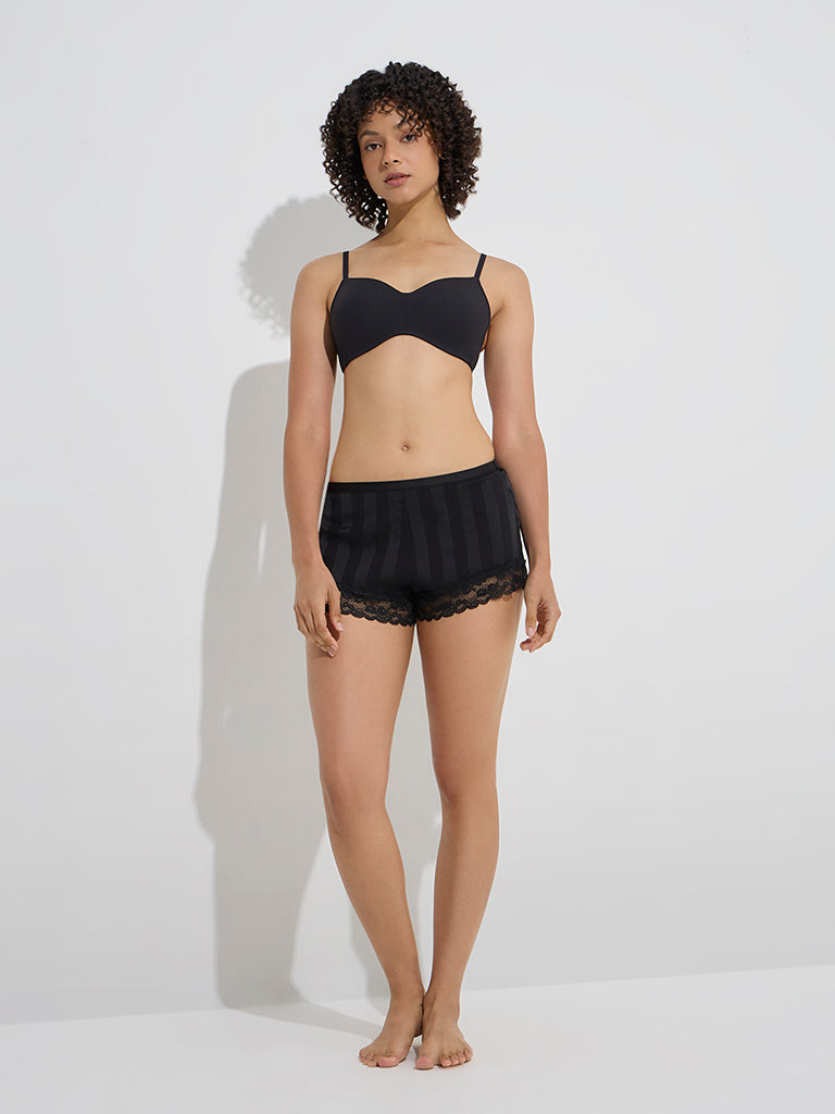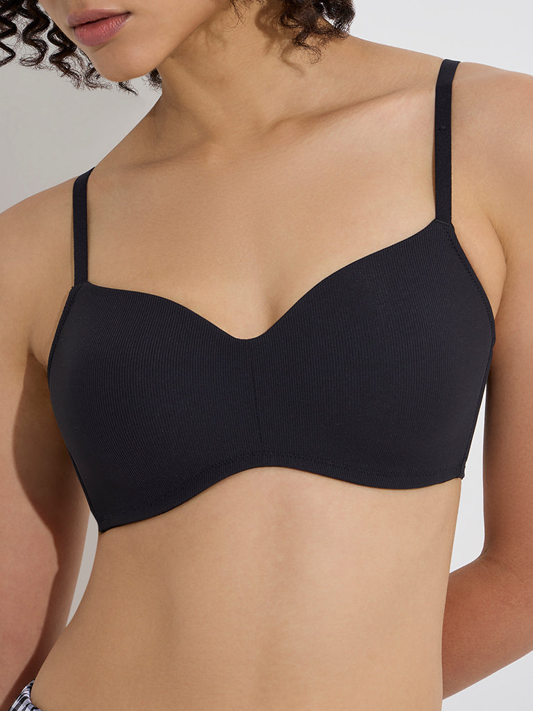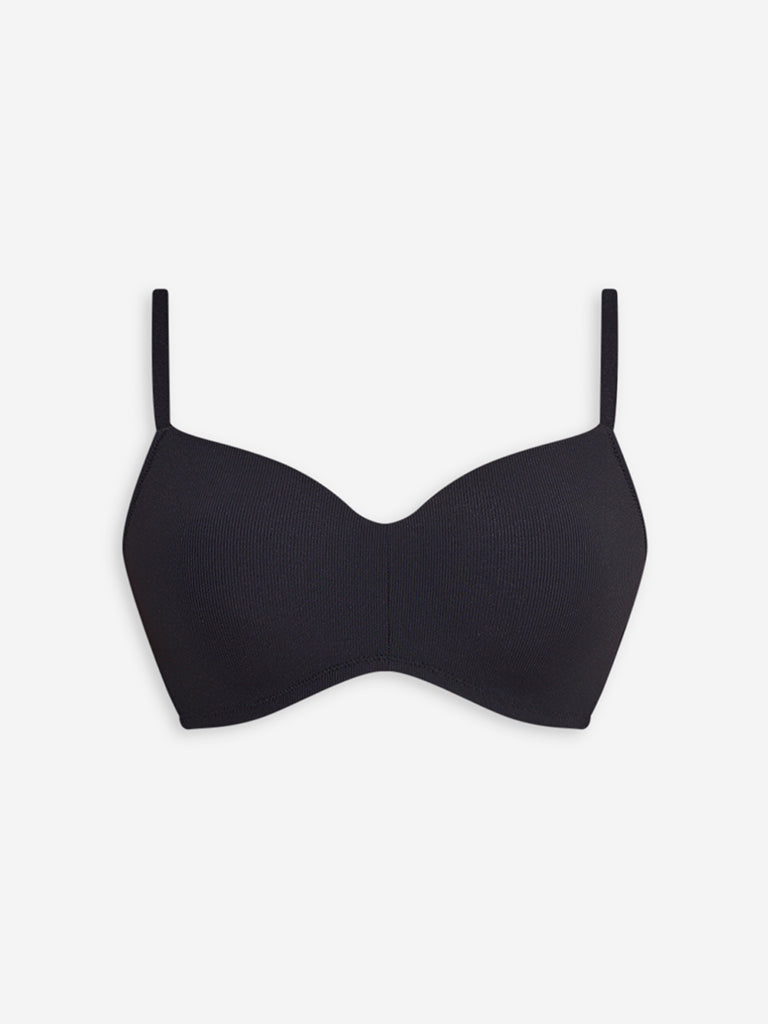 Wunderlove Black Ribbed-Textured Padded Bra