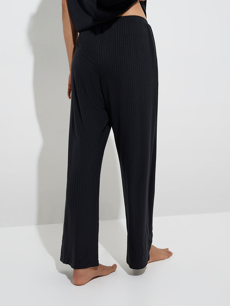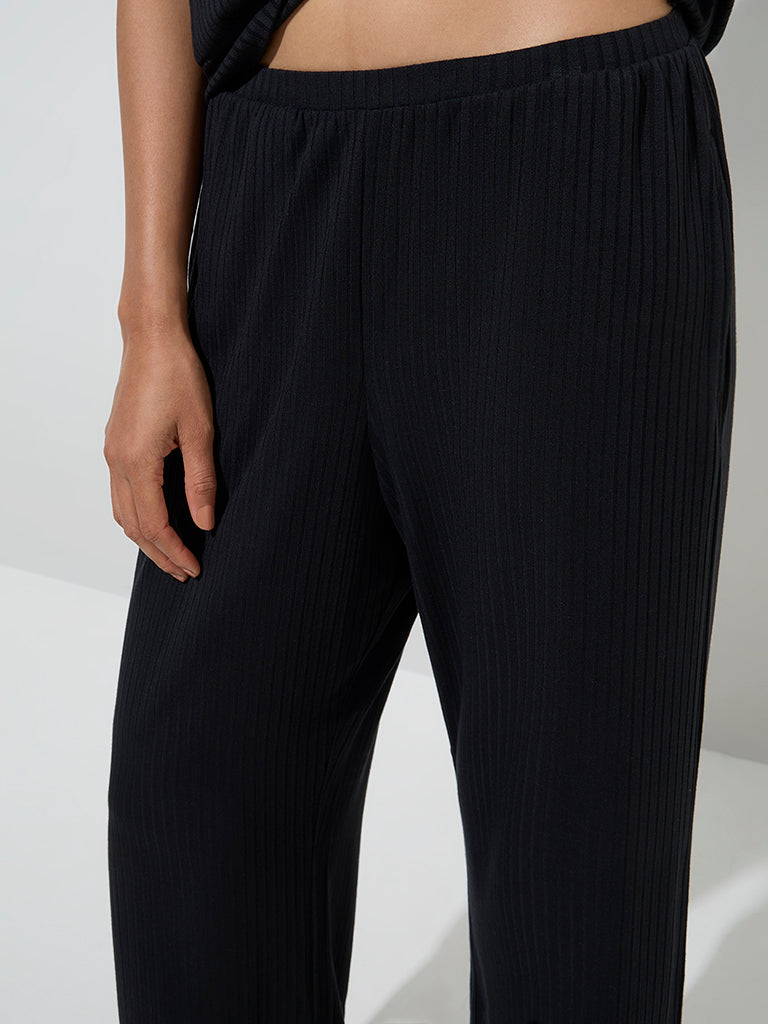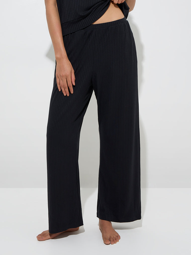 Wunderlove Black Self-Striped High-Rise Lounge Pants
