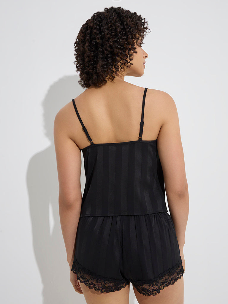 Wunderlove Black Self-Striped Lace-Detailed Satin Camisole