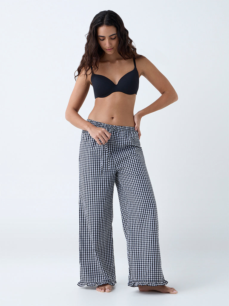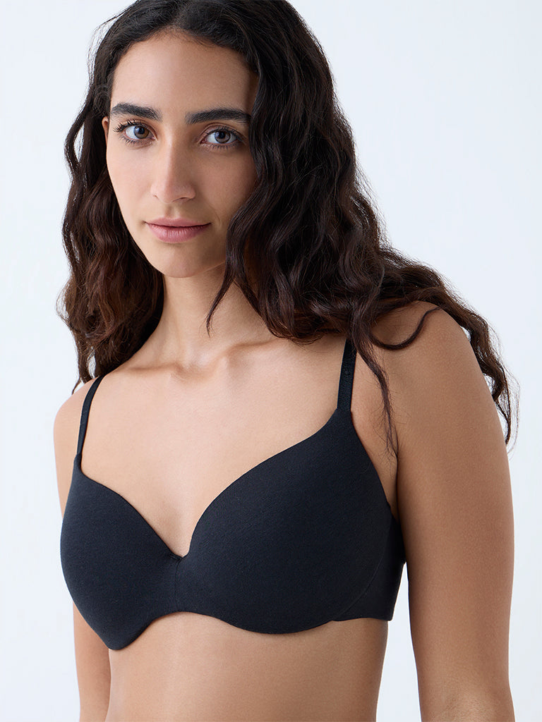 This black bra from Wunderlove channels understated allure with functional design. Made from a cotton-blend fabric that moves with you. it features padded cups and a wired frame to offer structured support without compromising on comfort. Finished with adjustable straps and a classic hook closure. it’s a reliable go-to with a confident edge.