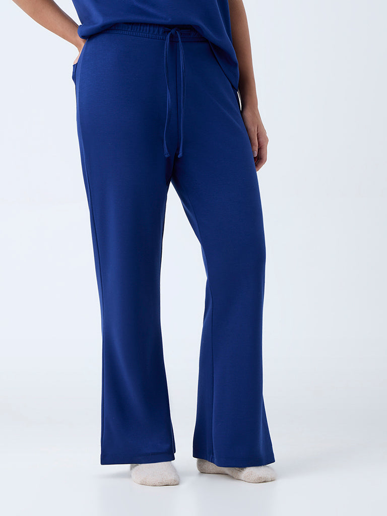 Slip into all-day ease with these blue lounge pants from Wunderlove. Milled from a gentle fabric. they feature a smooth elastic waistband with adjustable drawstrings for a personalised fit. Functional back pockets add a practical touch. making them a go-to for relaxed days at home.