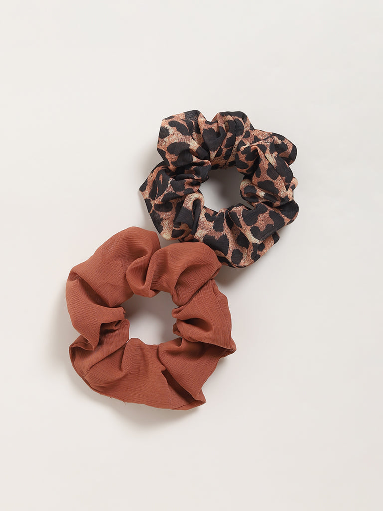Wunderlove Brown Animal Print Scrunchies – Pack of 2