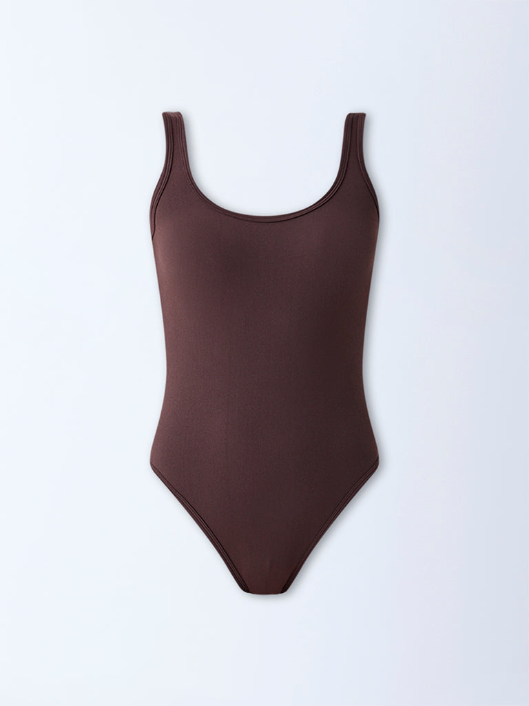 A reliable neutral you can wear on repeat. this brown bodysuit from Wunderlove is as versatile as it is comfortable. Crafted from a sumptuous ribbed fabric. it features a scoop neck and sleeveless silhouette for a flattering fit. Finished with a button closure. it’s the kind of essential that slips seamlessly into both casual and dressed-up looks.