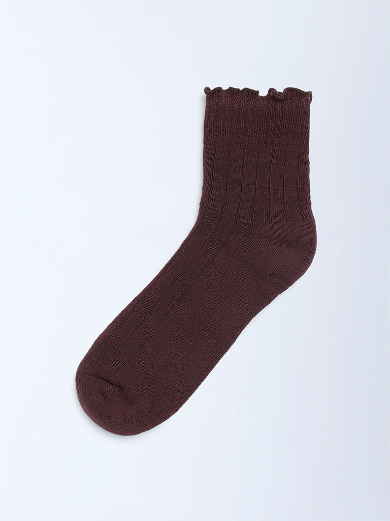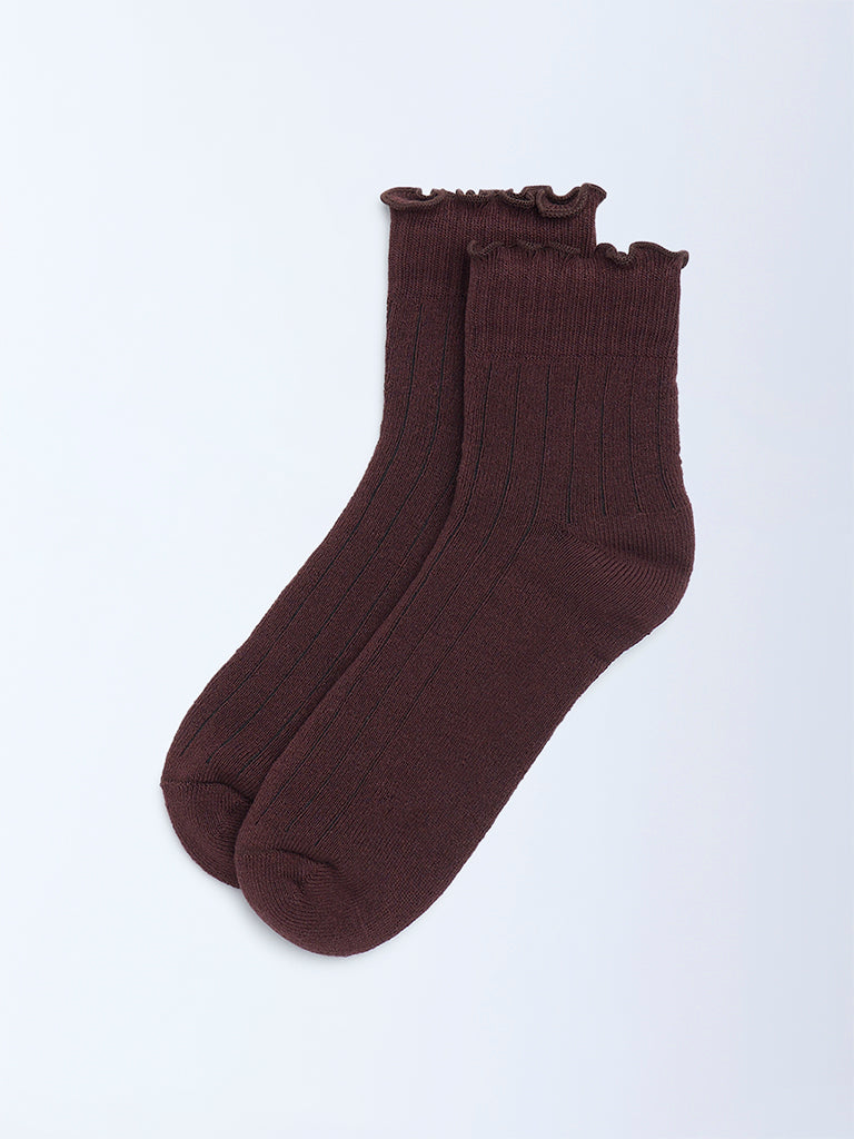 Wunderlove Dark Brown Cotton-Blend Ankle Socks