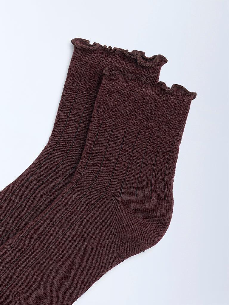 These dark brown ankle socks from Wunderlove bring easy comfort to your daily wear. Made from a soft. stretch-cotton blend. they offer a smooth fit that stays in place all day. Designed with reinforced heels for added durability. they’re a versatile essential that pairs effortlessly with both casual and work looks.