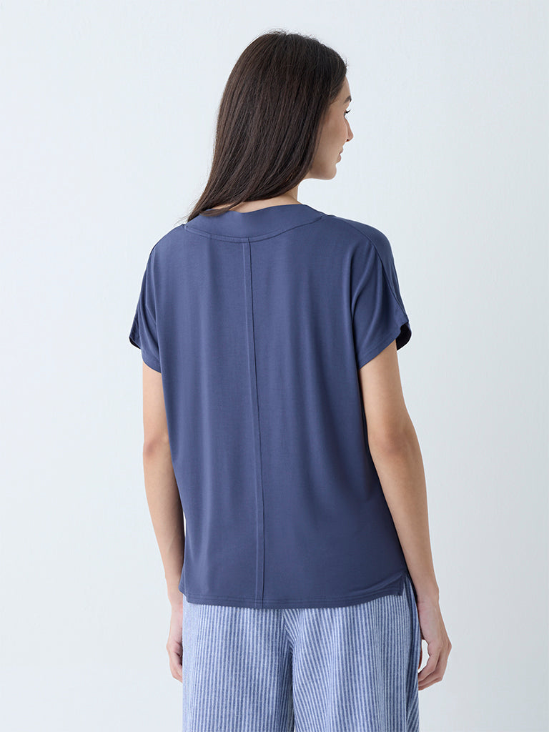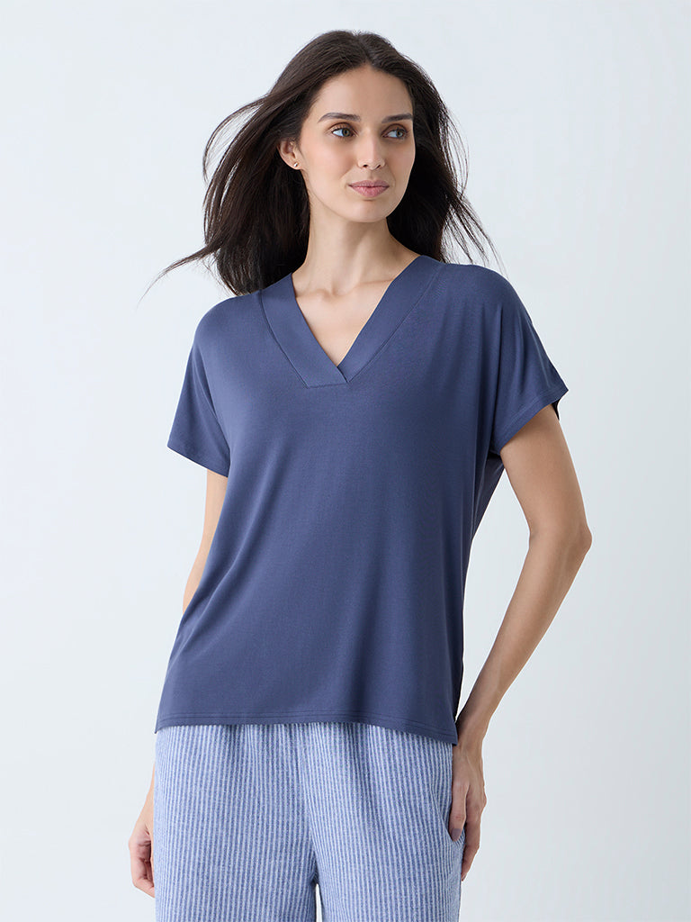 Wunderlove Dusty Blue Solid V-Neck T-Shirt