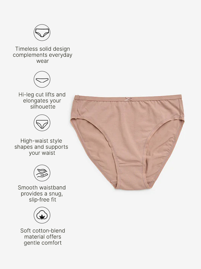 This pack of three briefs from Wunderlove showcases elegant shades of dusty pink. beige. and maroon. Made from a sumptuous cotton-blend fabric. they feature an elasticated waistband for a secure fit. while the high-leg cut ensures enhanced comfort and ease of movement.