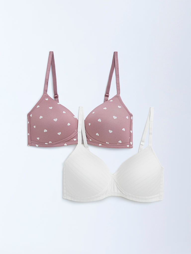 Wunderlove Dusty Pink Printed Padded Bra – Pack of 2