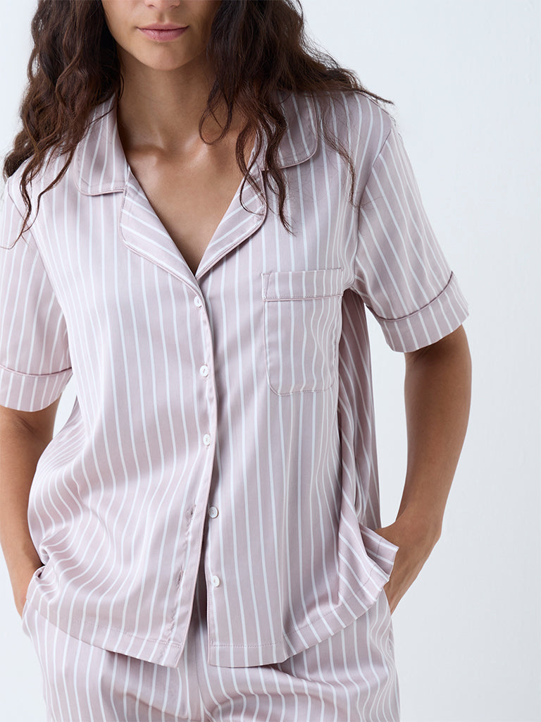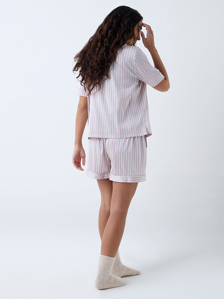 Wunderlove Dusty Pink Stripe Pattern Shirt and Shorts Set