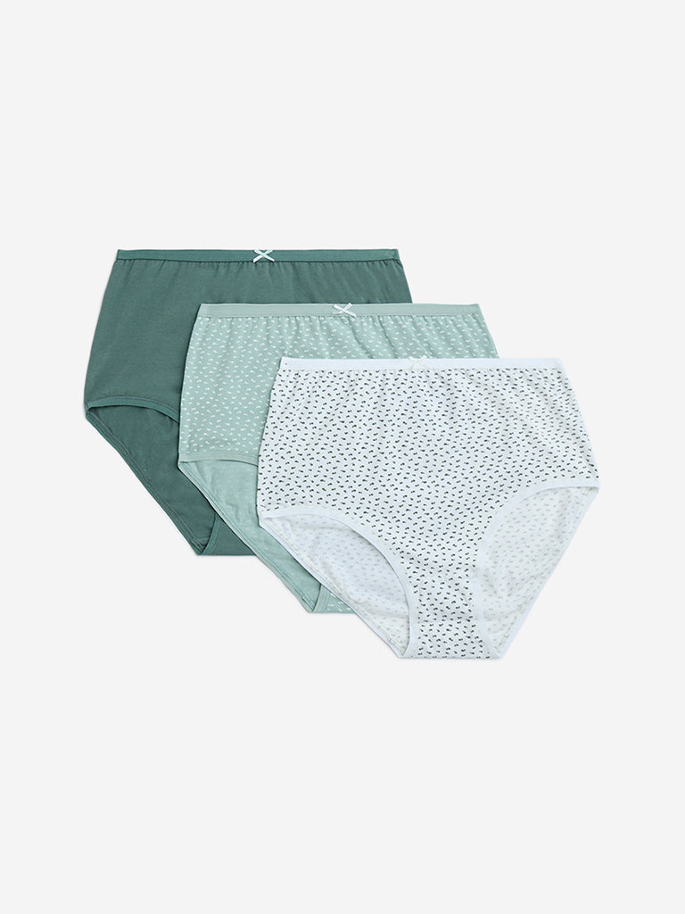 Wunderlove Green Cotton-Blend Full Briefs -Pack of 3