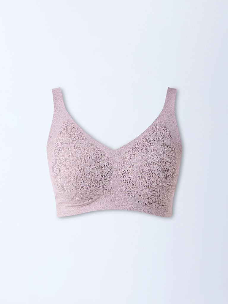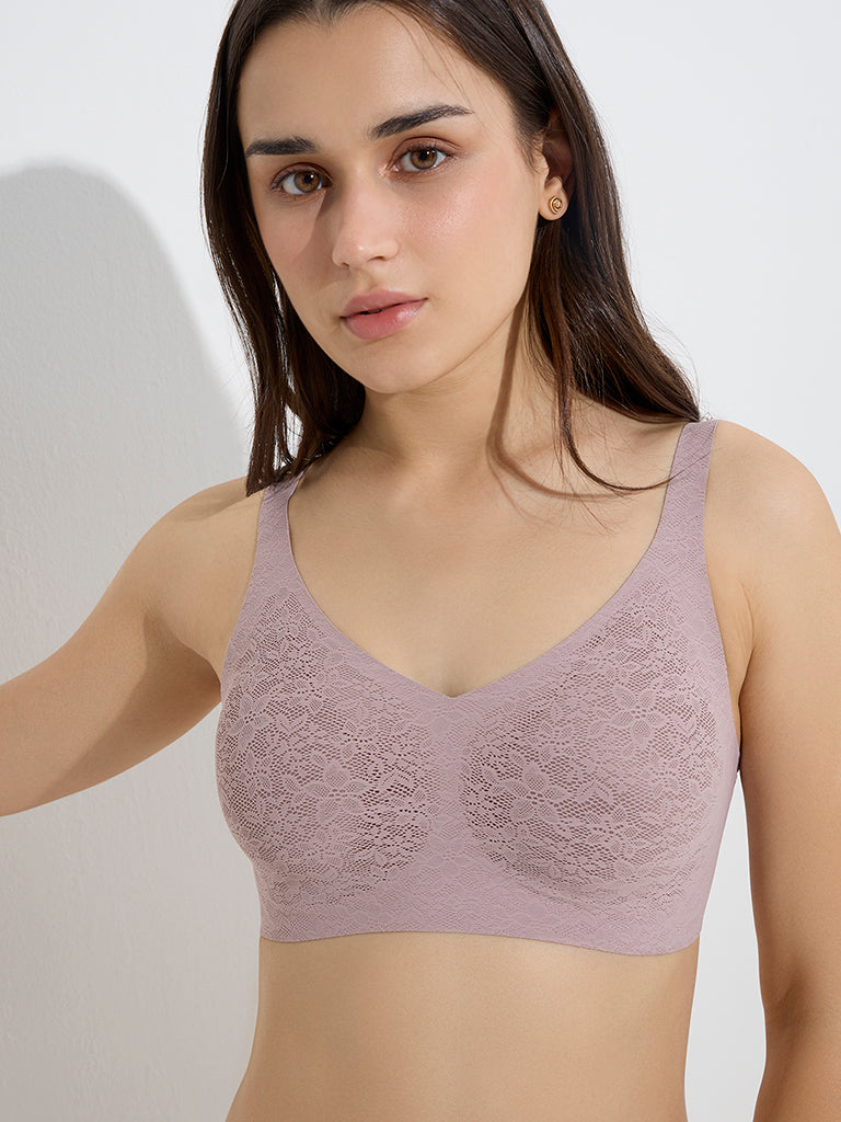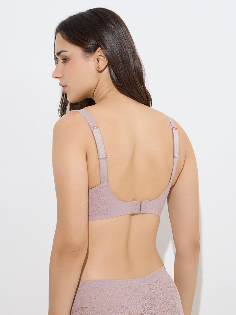 Wunderlove Light Mauve Lace Design Padded Full Coverage Bra