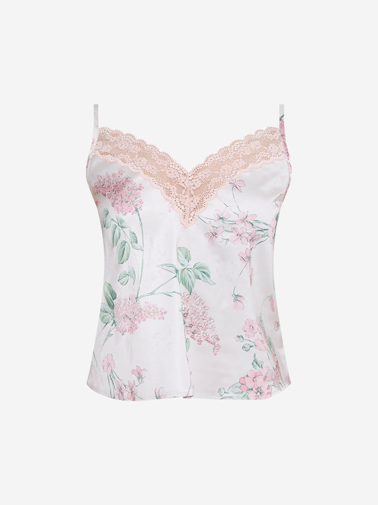 Soft and feminine. this light pink camisole from Wunderlove is adorned with a graceful floral print. Crafted from high quality satin fabric. it features a lace-detailed V-neck and adjustable shoulder straps. making it a graceful choice for lounging or layering.