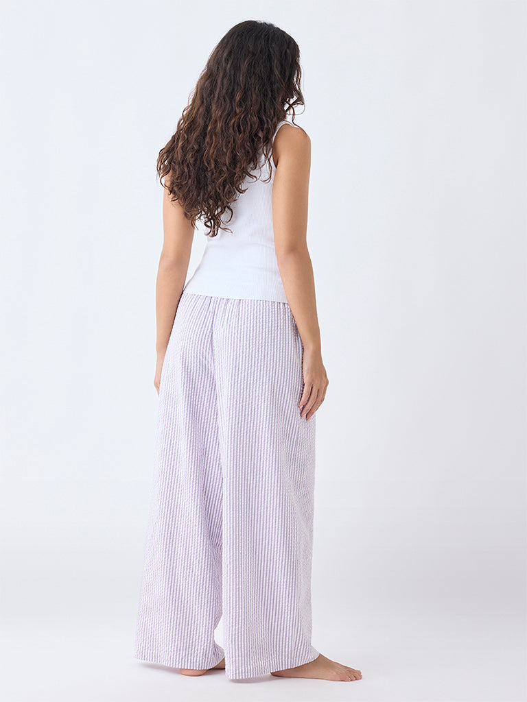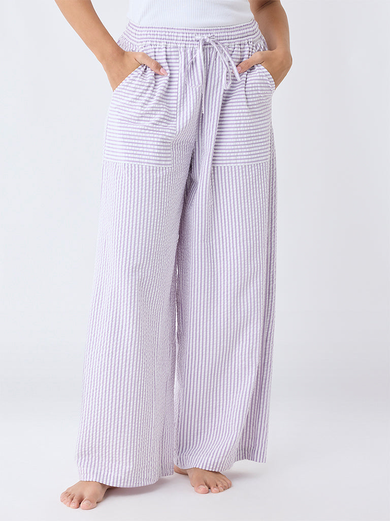 Wunderlove Lilac Seersucker Striped High-Rise Cotton Pants
