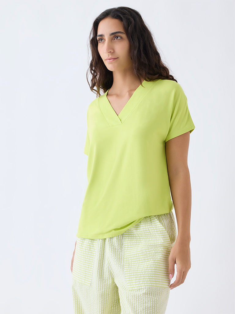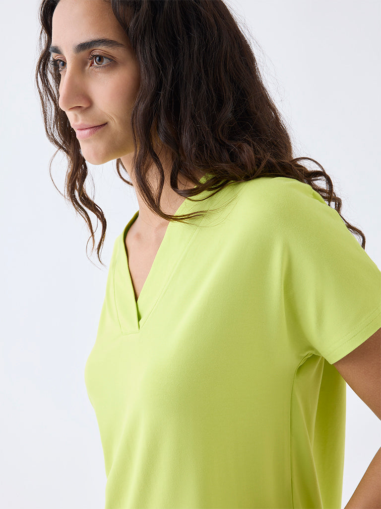 Wunderlove Lime Solid V-Neck Top