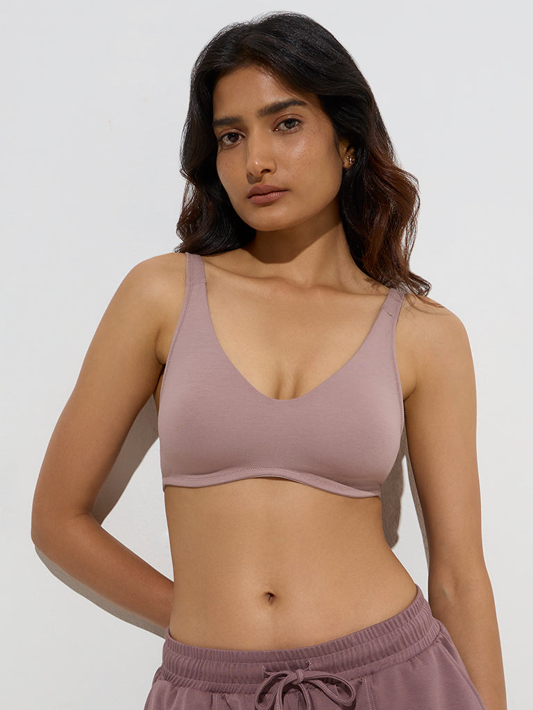 This mauve bra from Wunderlove is constructed from a soft cotton-blend fabric. offering exceptional comfort. Designed with adjustable straps and a hook-back closure. it ensures a customized fit for all-day wear.