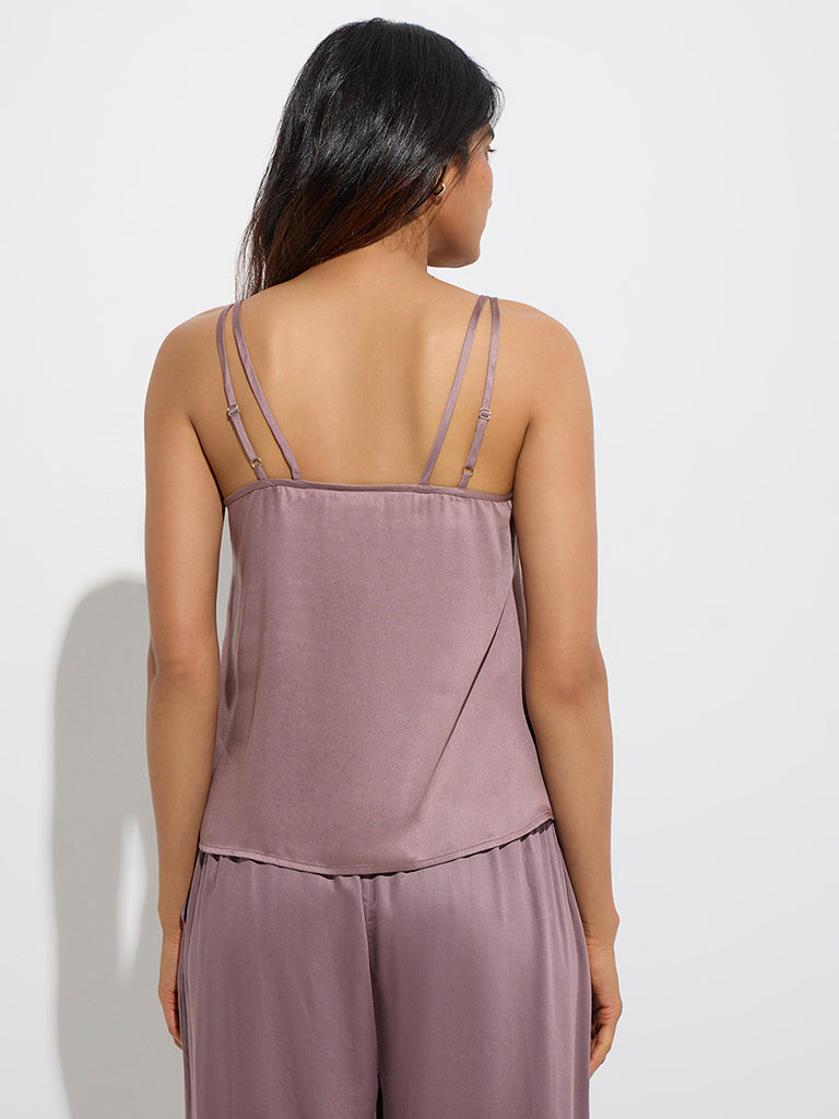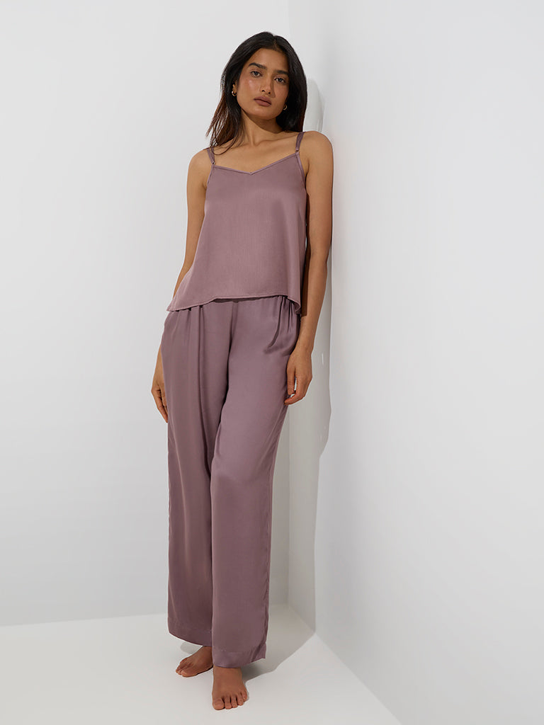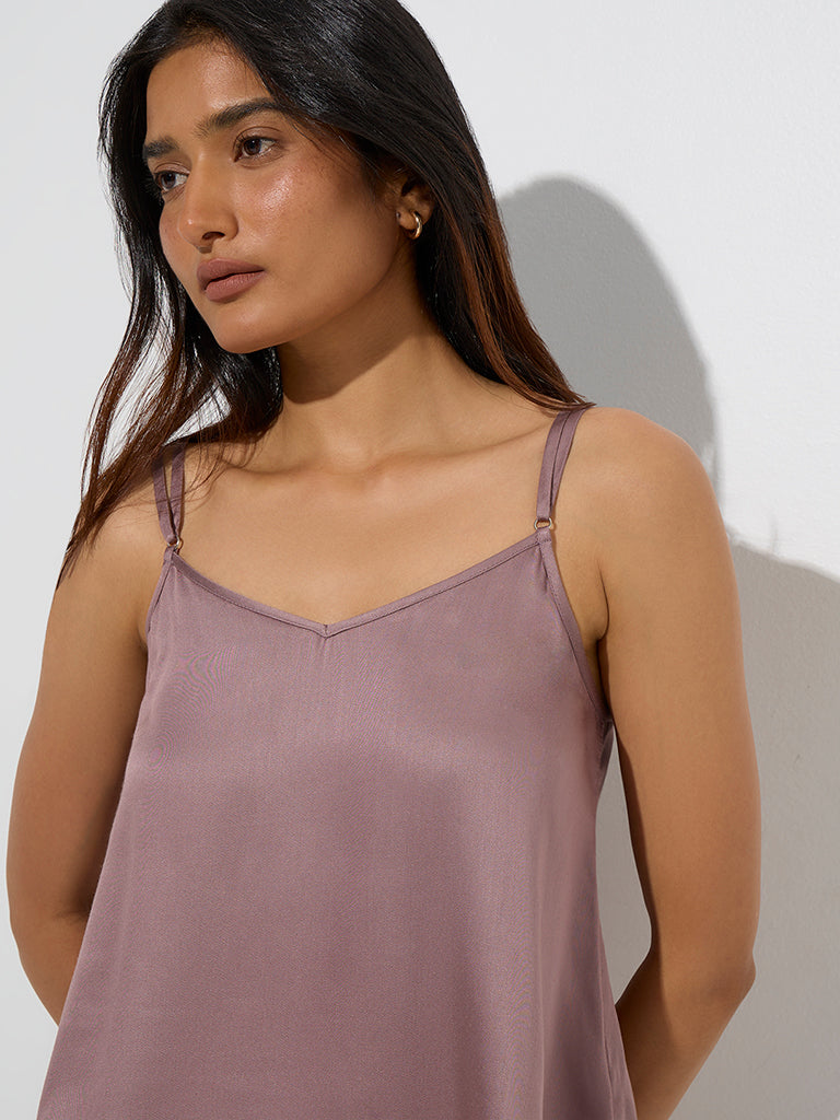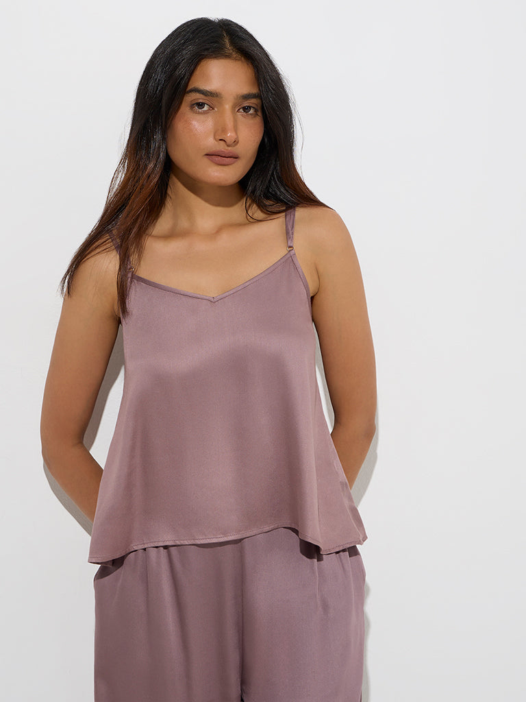 This mauve camisole from Wunderlove is crafted from a luxe. satin-like fabric that feels soft and gentle against the skin. Featuring a flattering V-neck and adjustable shoulder straps. it offers a relaxed fit that’s ideal for sleep or lounging.