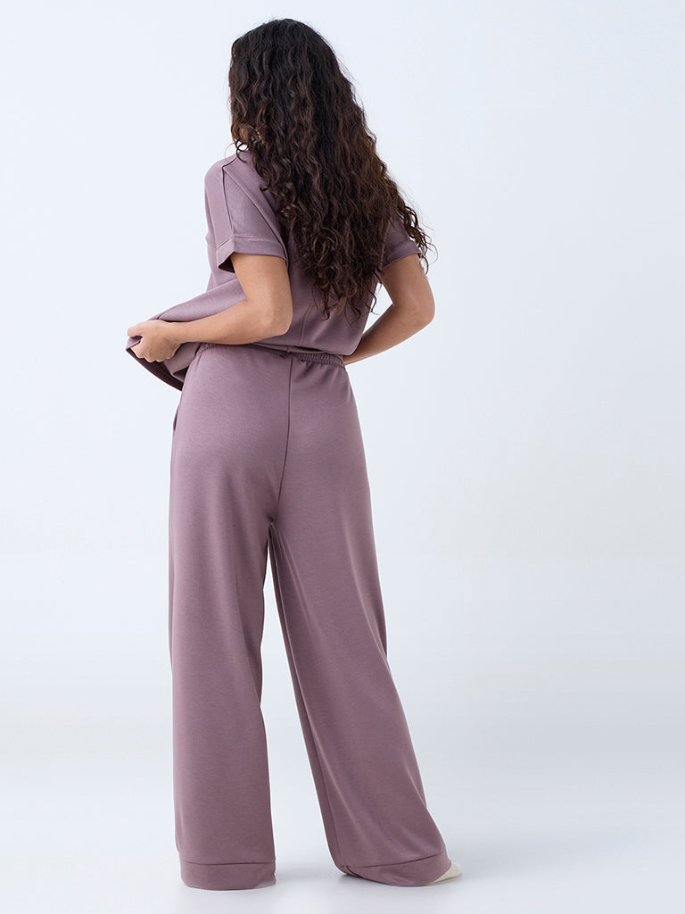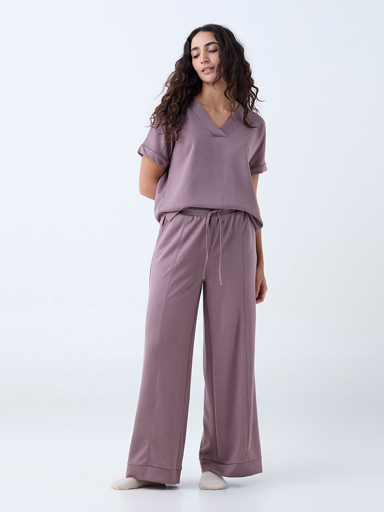 Unwind in style with these mauve high-rise pants from Wunderlove. Designed with a smooth elastic waistband and adjustable drawstrings. they offer a personalised fit. Finished with handy side pockets. they’re a go-to pick for relaxed days or off-duty errands.