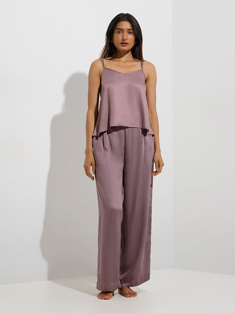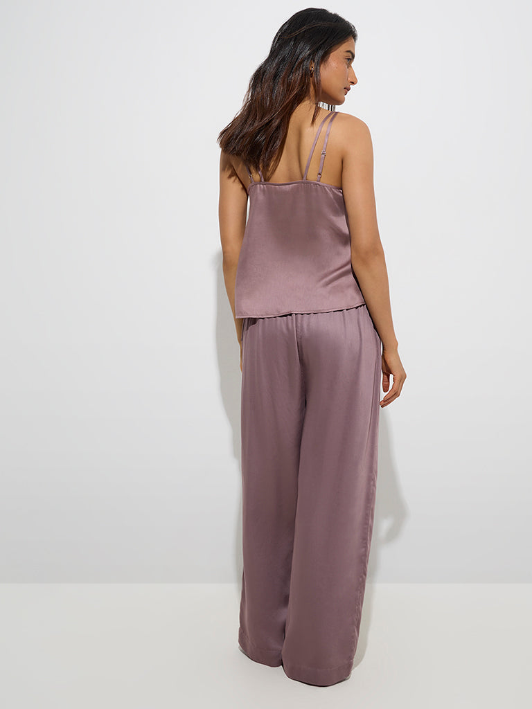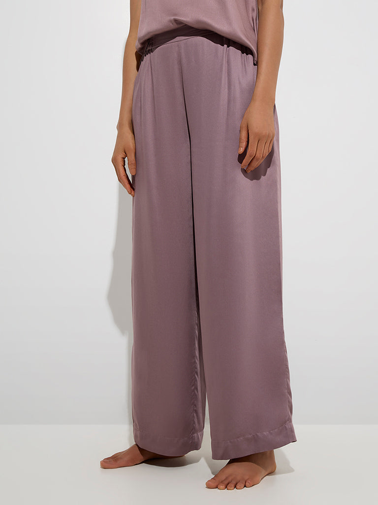 Wunderlove Mauve Solid High-Rise Satin Pants