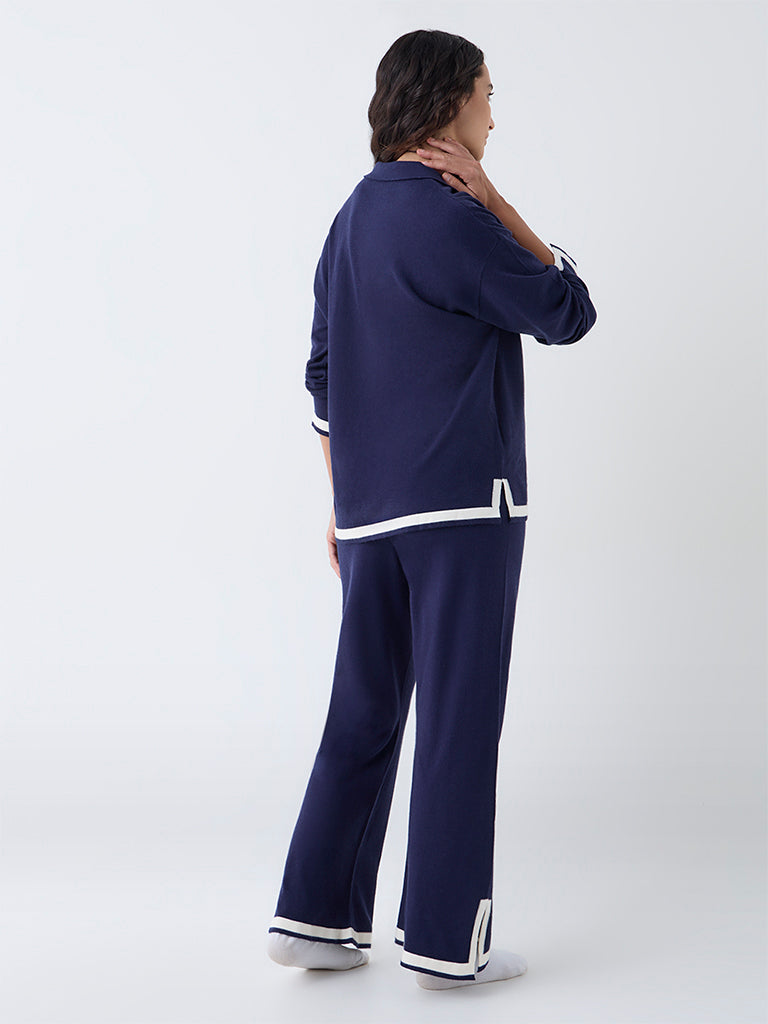 Slip into comfort with these navy lounge pants from Wunderlove. Crafted from a premium. ultra-soft fabric. they’re designed to keep you relaxed through slow mornings and cozy evenings alike. The elasticated waistband offers a flexible fit. while the contrast stripe along the hem adds a touch of sporty charm.