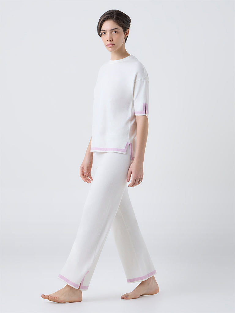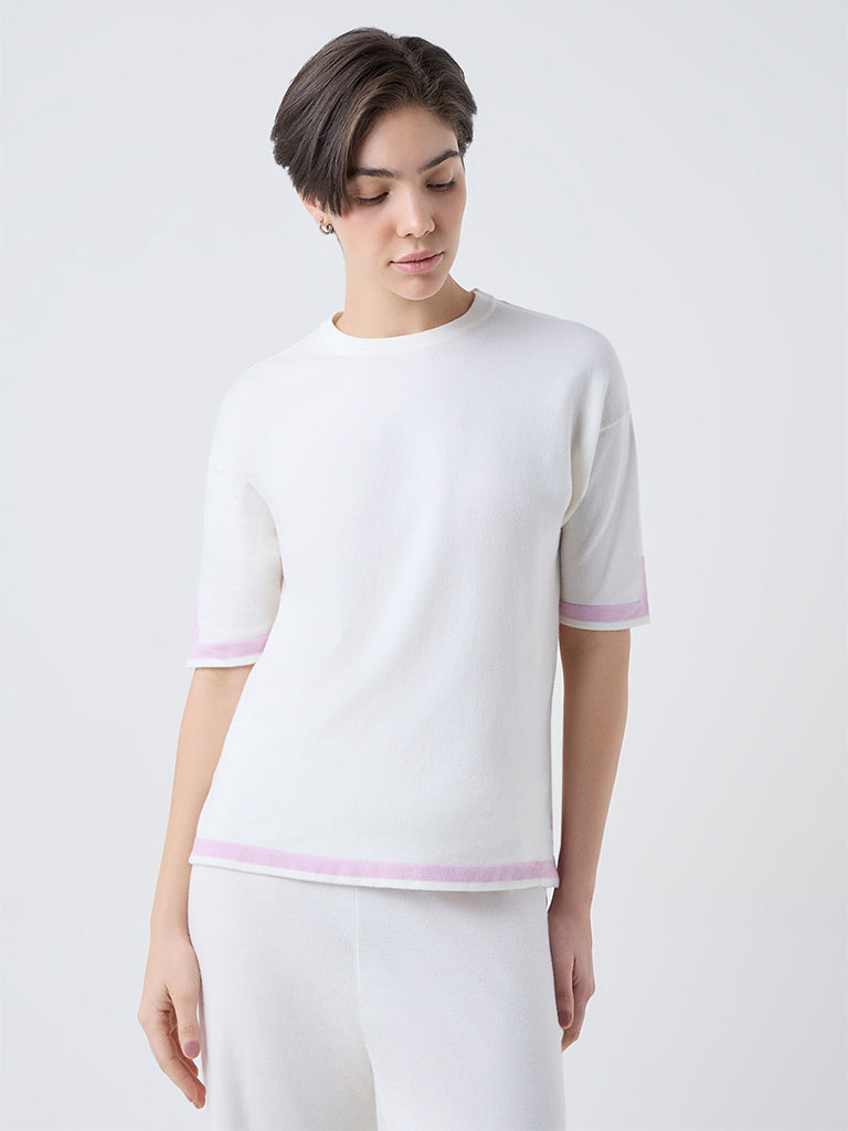 Unwind in effortless comfort with this off-white top from Wunderlove. milled from soft. high-quality fabric for a gentle touch against the skin. Featuring a round neck and drop sleeves. it’s accented with contrast stripes that lend a hint of detail to its easy silhouette. An ideal pick for relaxed lounging or casual days out.