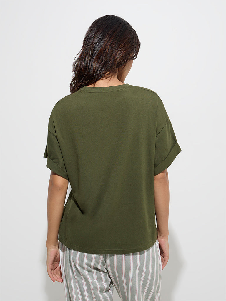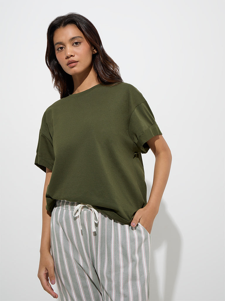 Wunderlove Olive Solid Cotton Top