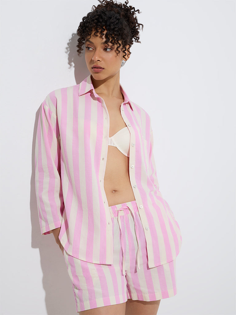 Wunderlove Pink Striped Cotton Shirt and Shorts Set