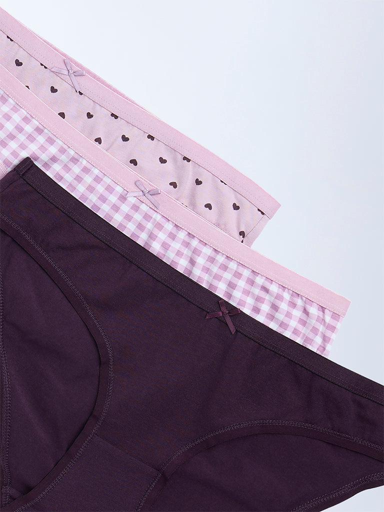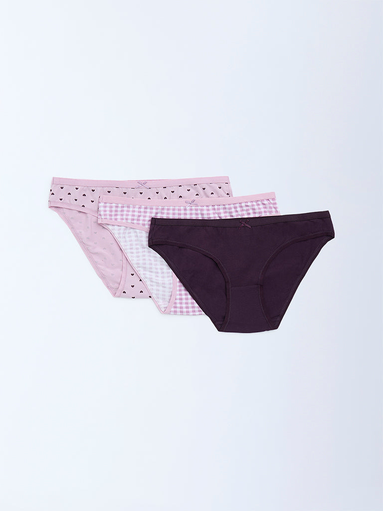 Wunderlove Purple Cotton-Blend Bikini Briefs – Pack of 3