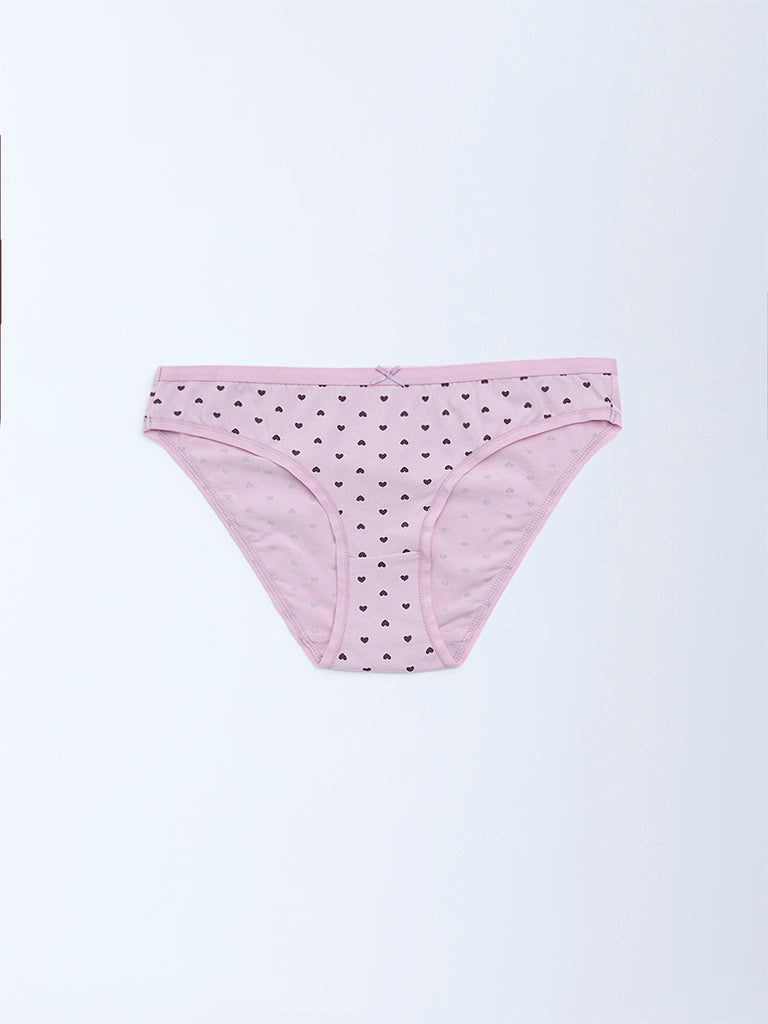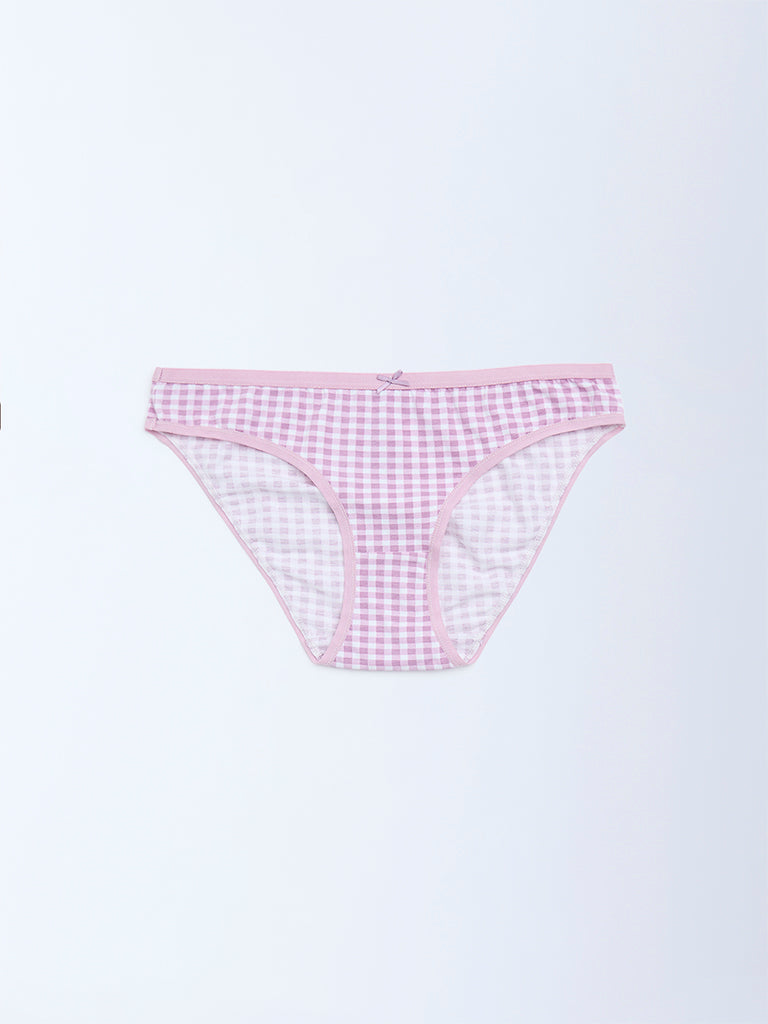This pack of three bikini briefs from Wunderlove adds a playful twist to your everyday essentials. Featuring a mix of heart prints. a checkered design. and a solid purple style. the set brings together charm and comfort in equal measure. Crafted from a cotton-blend fabric. each pair is finished with a smooth elastic waistband for a secure fit.