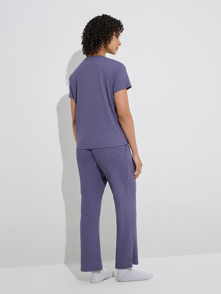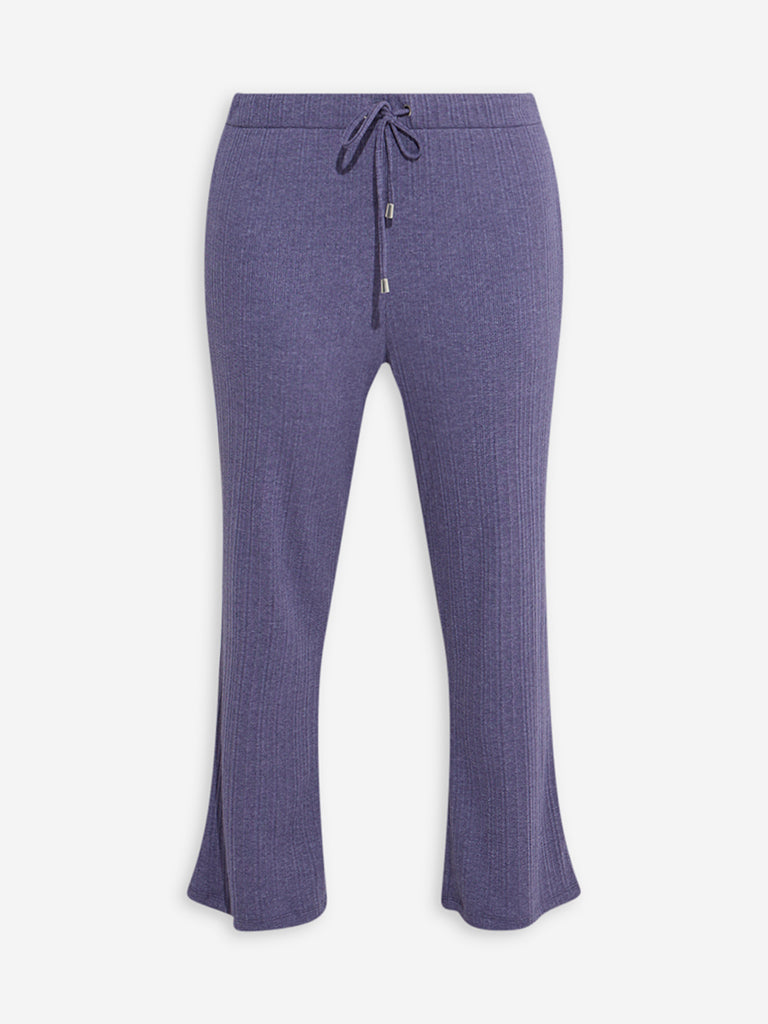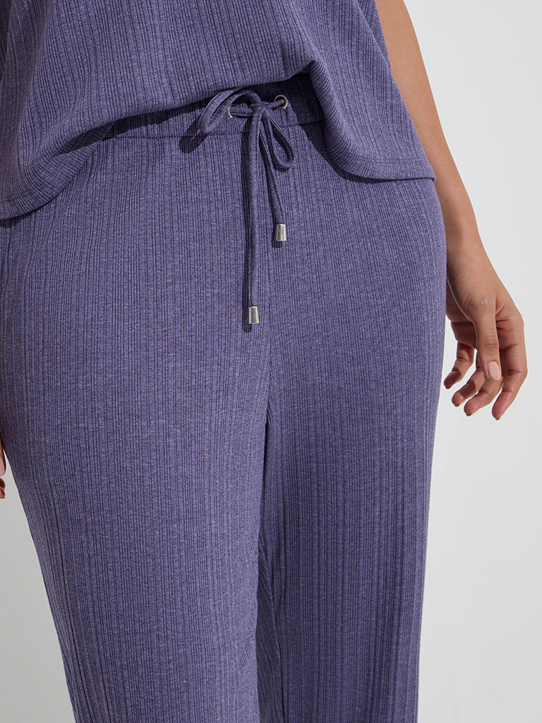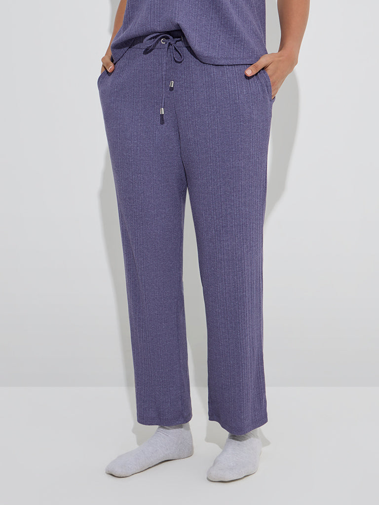 Wunderlove Purple Ribbed-Textured High-Rise Pants